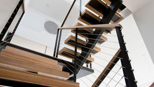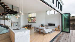 This home and integrated accessory dwelling unit were designed to specifically take advantage of unusual site conditions. The boundaries of the site are incongruous – no two edges are parallel, which created an opportunity to align to boundaries and create dynamic, yet functional spaces. The resultant folds are reflected in the external form and the interior space. The downslope lot afforded unobstructed panoramic views from the large open rooms though multi-slide doors and windows, and from the expansive living room and roof decks. This connection further enhances the relationship of the architecture to the larger regional context. The open interiors connect vertically as well as horizontally to create a fluid experience from top to bottom. In all the project is an integrated architectural experience that blurs lines between spaces and scales.